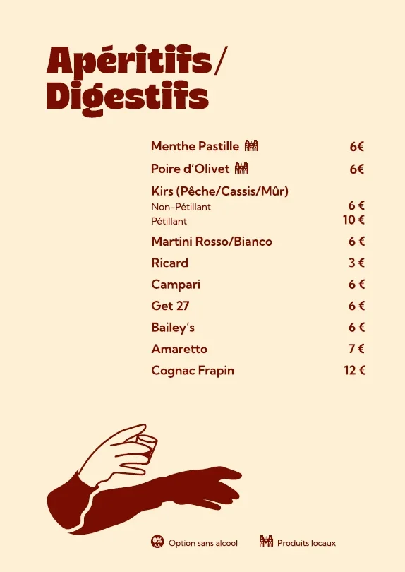 * ( Sous réserve d'éventuelles modifications de la part de l'établissement, menu fourni à titre indicatif et limité dans le temps )