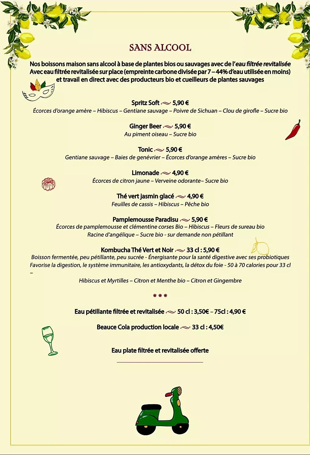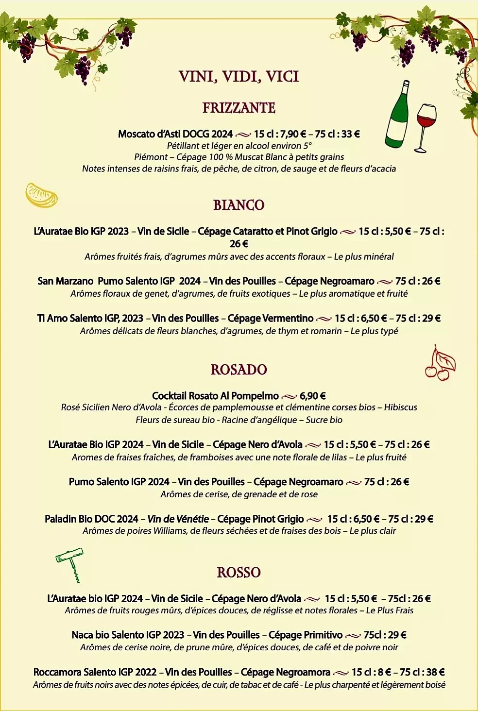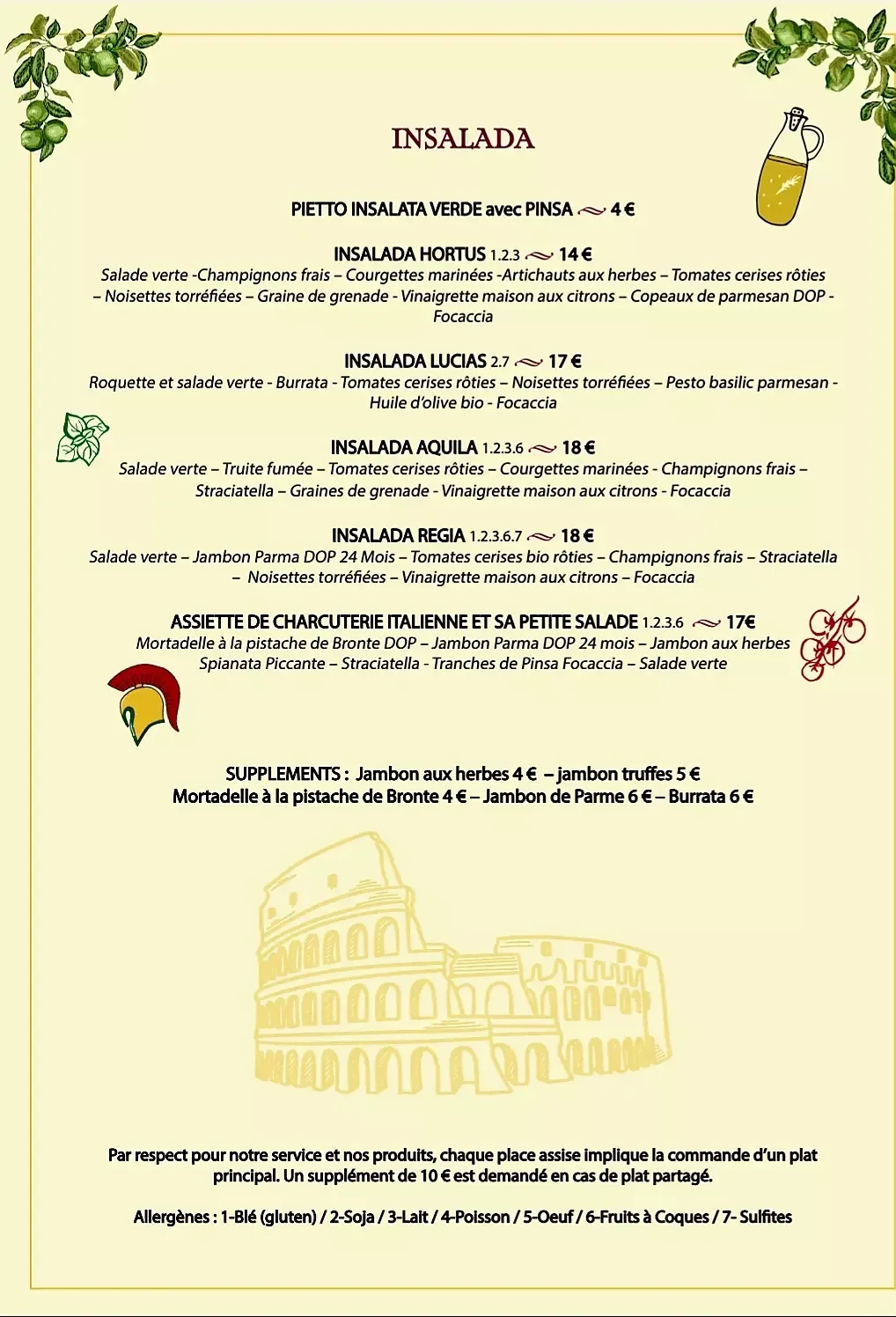 À côté des pinsas, la carte propose également des entrées comme l’assiette de charcuterie italienne, plusieurs salades composées, et des desserts gourmands : tiramisu à la cuillère, trio de mini-babas au limoncello et sorbet bio à la mandarine de Sicile, ou encore une panna cotta à la framboise.