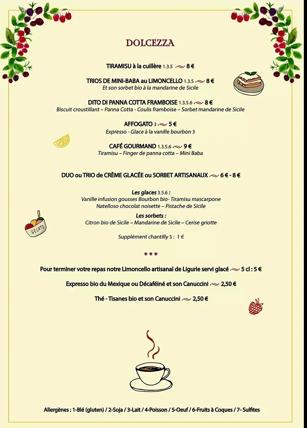 * ( Sous réserve d'éventuelles modifications de la part de l'établissement, menu fourni à titre indicatif et limité dans le temps )